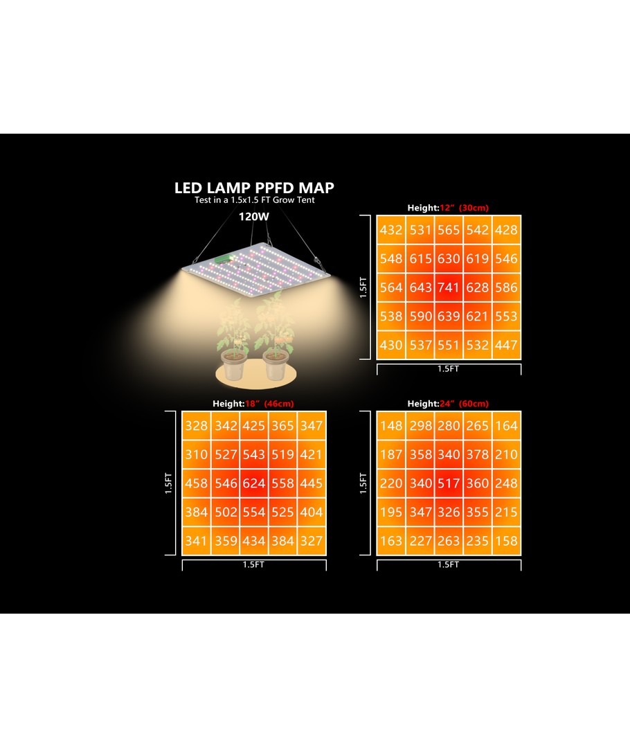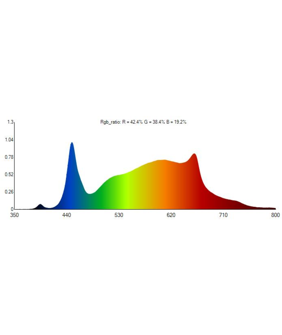 | PAR (senterverdi): | 620 ppfd 30cm 580 ppfd 45cm 410 ppfd 60cm |