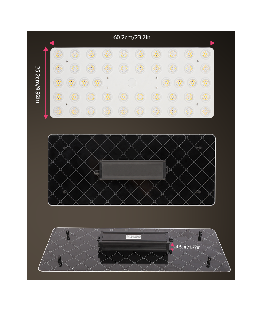 Kraftig fullspektret vekstlampe, uten vifte, innebygd dimmer
