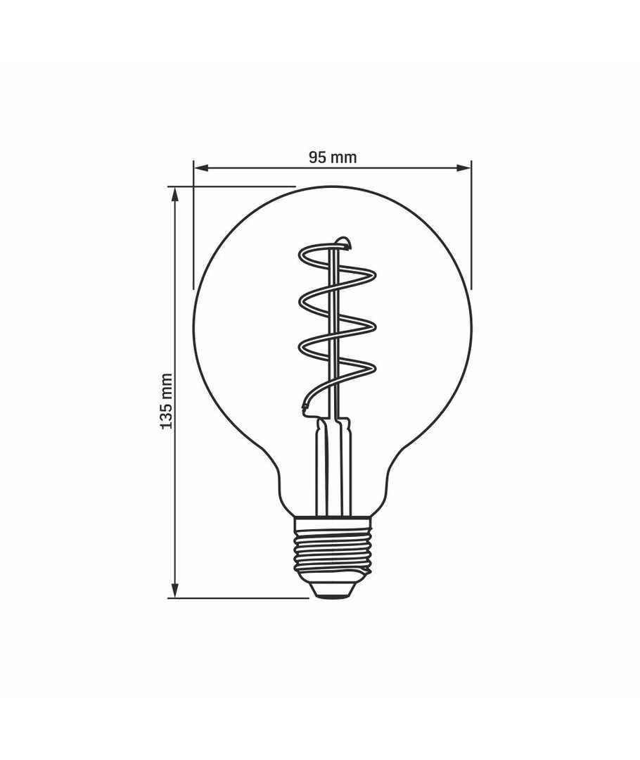 Denne moderne G95 LED-pæren kombinerer klassisk design med avansert teknologi. Med en effekt på maks 4W og en E27 stor fatning, er denne pæren et ideelt valg for enhver standard lampe som krever subtil eleganse.