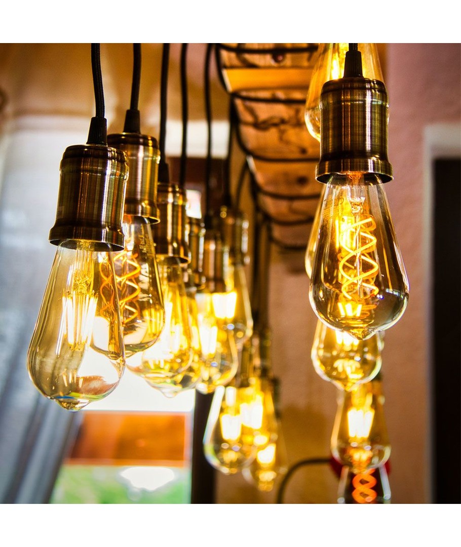 Opplev en unik kombinasjon av stil og funksjonalitet med 4W dimbar LED-pære E27 - Spiral kulltråd, ravfarget, ekstra varm hvit, ST64, 230V. Denne LED-pæren er designet for å skape en koselig og innbydende atmosfære i ethvert rom.