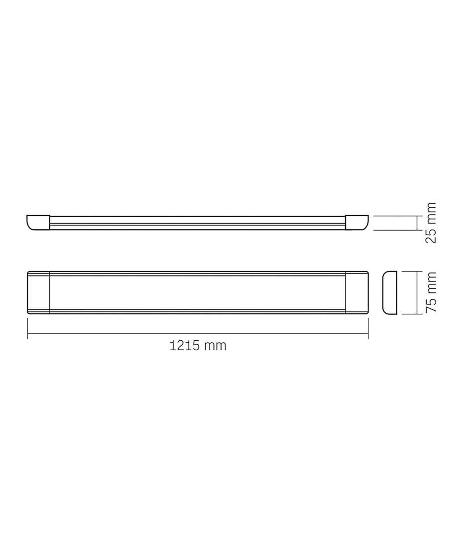 De integrerte komponentene gir en pålitelig lyskilde som opprettholder stabil lysstyrke over tid. Med dimensjoner på 75 x 1215 x 25 mm og en IP20 klassifisering, er denne armaturen egnet for innendørs bruk hvor det ikke er behov for vannmotstand.