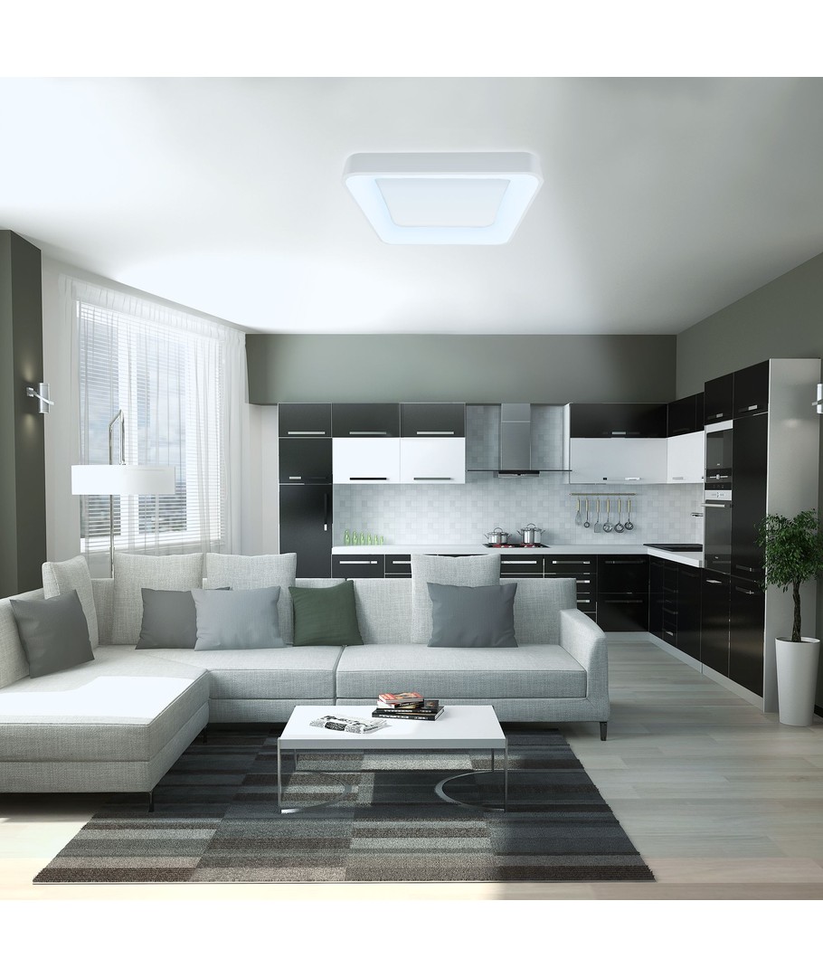 Med en solid garanti på 3 år, tilbyr denne taklampen trygghet og sikkerhet i din lysinstallasjon. Dimensjonene på 450 x 450 x 80 mm gjør den til et allsidig valg for mange typer rom. Den passer spesielt godt i arbeidsområder som lakkeringshaller på grunn av sitt sterke og kalde lys.