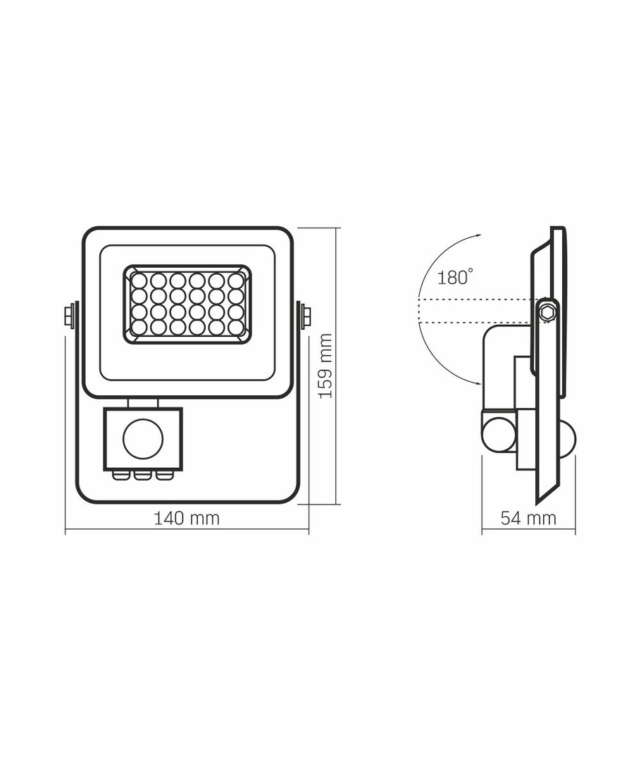 Spotten er utstyrt med en effektiv bevegelsessensor, og den integrerte lyskilden sikrer en pålitelig ytelse over tid. Med dimensjoner på 140 x 159 x 54 mm, passer den lett inn i ulike miljøer, samtidig som den er diskret og stilren.