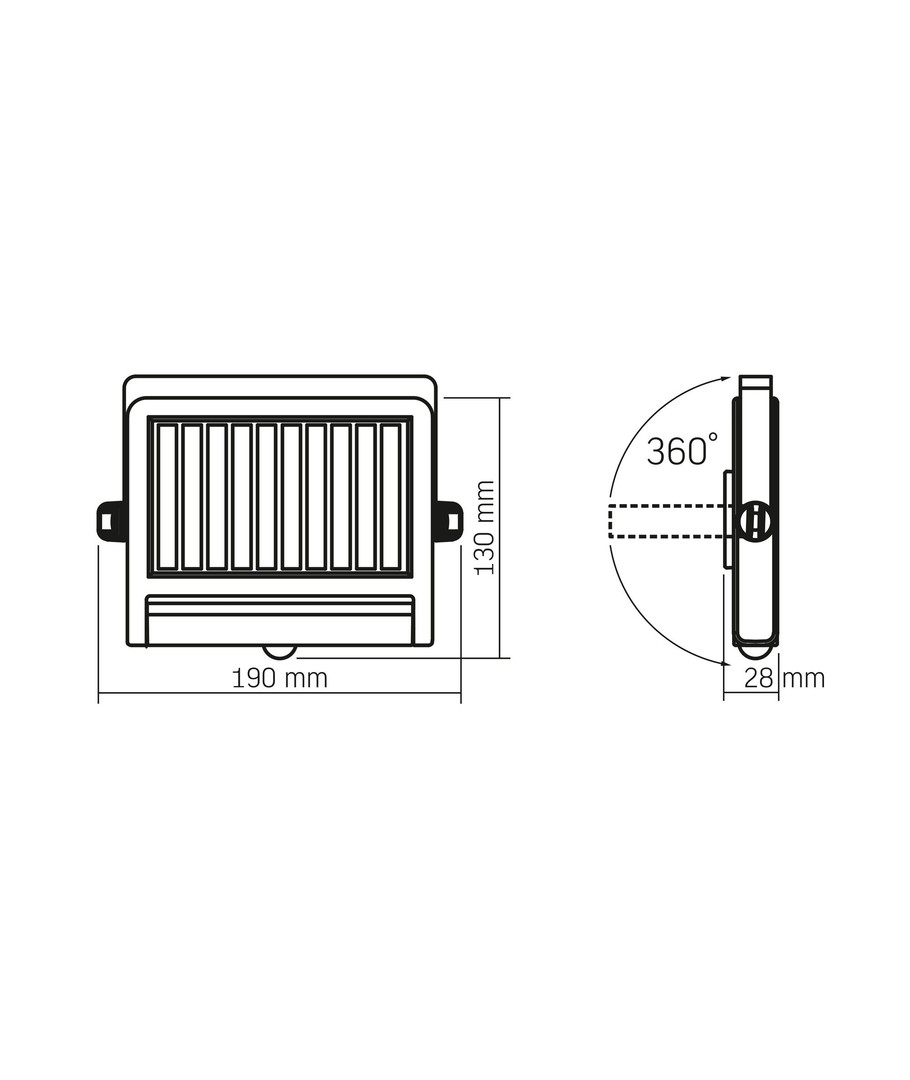 Lampens kompakte størrelse på 130 x 190 x 28 mm gjør at den lett kan plasseres der du trenger den mest. Med en IP54-klassifisering er den motstandsdyktig mot fuktig luft og vannsprut, noe som gjør den ideell for utendørs bruk.