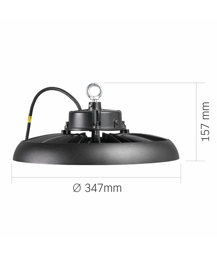 Dette high bay lyset er designet for høy ytelse og effektiv belysning i ulike miljøer. Med en effekt på 200W og tilkobling til en 230V forsyning, er det ideelt for store åpne arealer som lagerbygg, fabrikker og varehus.