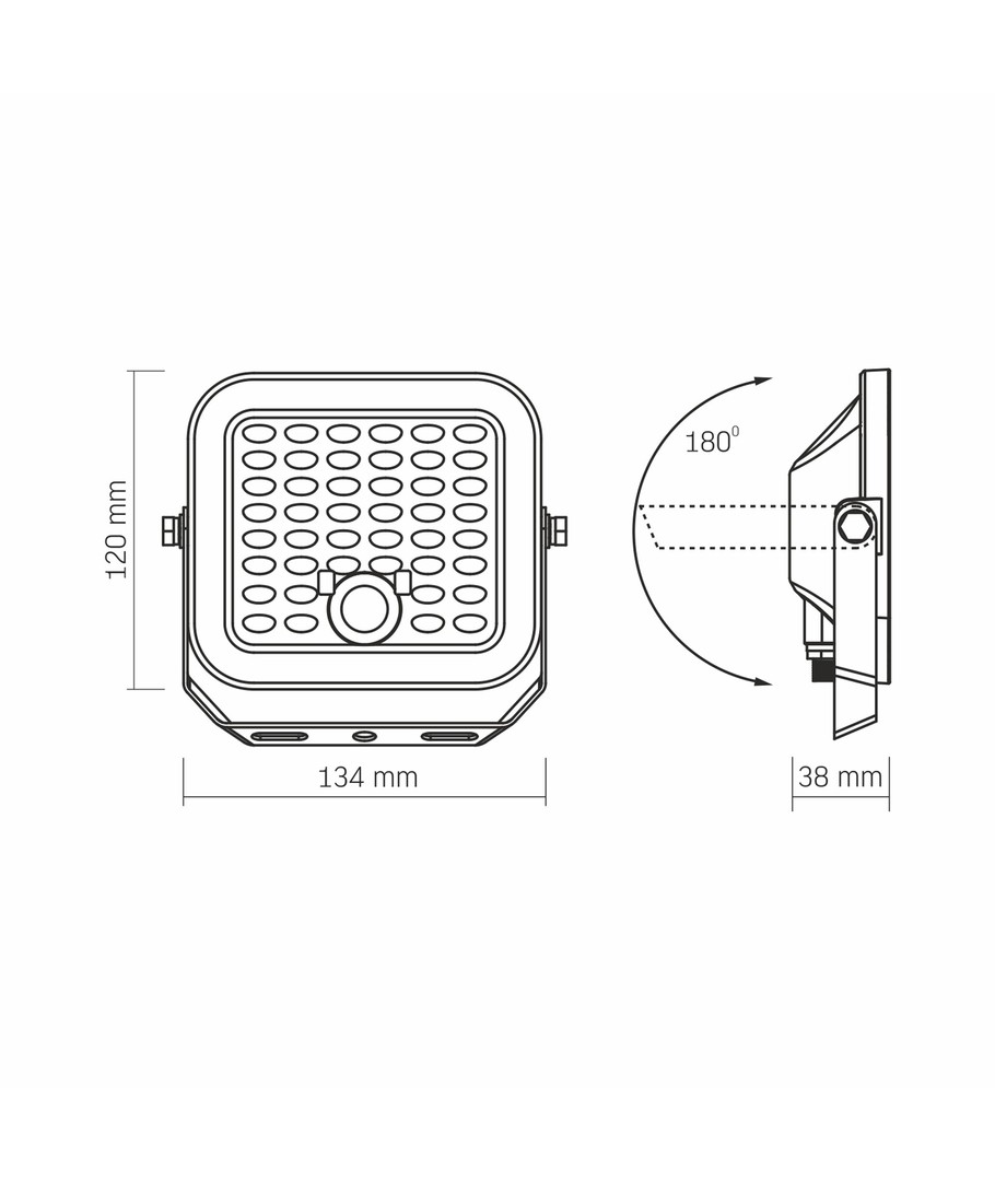 Projektøren er IP65-godkjent, noe som betyr at den kan brukes utendørs og vil motstå vannsprut og regn. Dette gjør den perfekt for oppkjørselen, hagen eller noen annen utendørs plass hvor du trenger pålitelig belysning.