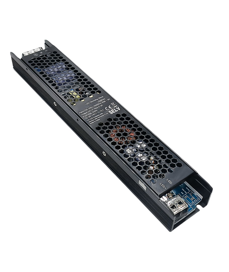 Strømforsyningen må kobles til en 230V forsyning og gir en utgang på 24V DC, noe som gir trygg og stabil strøm for LED-armaturer. Med en kapasitet på 8,3A, kan den håndtere en rekke belysningsinstallasjoner opptil 200W, samtidig som den sikrer optimal ytelse og lang levetid for LED-lysene dine.